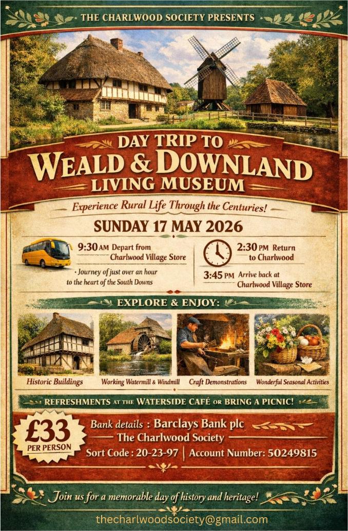 The Charlwood Society is excited to announce a day trip on Sunday 17 May 2026 to Weald & Downland Living Museum.